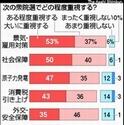 ②また、野田首相、安住財務相を中心とする政府は、「社会保障と税の一体改革」と銘打った消費税率引き上げのために、“不退転の決意”で、“国民の理解を求めるための”あらゆる努力をしている。これも、使わなくなる原発の堤防建設やダムに、未だに大きな無駄な支出を行いながら、財務省の言いなりに、最も簡単な国民へのしわ寄せを行おうとしている点で、何の理念もないものである。念のため、5年後に消費税が5%上がって10%になっているとすると、今年105円だったものは、5年後には110円になっているため、①と同時に行われれば、今年100万円の買い物ができた人は、5年後には、95X105/110=約91万円分の買い物しかできなくなるのである。 *資料(3)参照 つまり、需要の7割を占める消費者の購買力は、①と②を合わせれば、5年後には91%に落ちる。これでは景気がよくなるわけがないし、そもそも国民を幸福にしない政策である。さらに、年金生活者などのぎりぎりで暮らしている人には、早く死ねと言わんばかりの政策である。そして、ほかに方法がないわけではないのだから、こんなことしかできないのであれば、政治家としての能力に不足があると言わざるを得ない。 *資料(1): http://www.nishinippon.co.jp/nnp/item/287113 (西日本新聞2012.2.17 日銀、10兆円の追加金融緩和 物価目標「当面1%」 ) 日銀は14日開いた金融政策決定会合で、国債などの資産買い入れのための基金をこれまでの55 兆円から10兆円拡大する追加金融緩和を全会一致で決めた。追加緩和は昨年10月末以来、約3カ月 半ぶり。政策金利を0~0・1%とするゼロ金利政策の維持も決めた。また、ゼロ金利政策継続の是非を 判断する際の基準となる「物価目標」のめどについて「当面は消費者物価の前年比上昇率で1%とする ことを決めた」とした。景気の現状については「海外経済の減速や円高の影響などから、横ばい圏内の 動きとなっている」と判断した。 *資料(2): http://law.e-gov.go.jp/htmldata/H09/H09HO089.html 日本銀行法 第1条(日本銀行存在の目的) 1.日本銀行は、我が国の中央銀行として、銀行券を発行するとともに、通貨及び金融の調節を行う ことを目的とする。 2.日本銀行は、前項に規定するもののほか、銀行その他の金融機関の間で行われる資金決済の 円滑の確保を図り、もって信用秩序の維持に資することを目的とする。 第2条 (通貨及び金融の調節の理念) 日本銀行は、通貨及び金融の調節を行うに当たっては、物価の安定を図ることを通じて国民経済 の健全な発展に資することをもって、その理念とする。 第3条(日本銀行の自主性の尊重及び透明性の確保) 日本銀行の通貨及び金融の調節における自主性は、尊重されなければならない。 *資料(3): http://www.saga-s.co.jp/news/global/corenews.0.2140168.article.html (佐賀新聞2012.2.18 一体改革で全国集会スタート / 消費増税に理解求める) 政府は18日、消費税増税を柱とする社会保障と税の一体改革に国民の理解を求める全国対話集会を、 滋賀県長浜市を皮切りにスタートさせた。安住淳財務相は長浜市の集会で「消費税の増税をお願いする のは心苦しいが、日本の抱えている大きな問題を理解いただければと思う」と強調。少子高齢化の現状 などを説明した。 一体改革に関する与野党協議の実現に見通しが立たない中、世論を味方につけて 局面を打開したいとの思惑がある。だが、この日の4カ所の集会のうち3カ所は定員が15人程度に限ら れ、野党は「広く国民の声を聞けない」と批判を強めている。