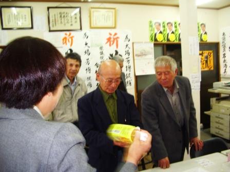 「JAビバレッジ佐賀」が、いいデザインの「必勝茶」を作って いるので、私の後援会で購入してもらって、県議選の陣中 見舞いに持って行きました。 元気を出して頑張っていきましょう! なお、田崎候補は、上場農協の組合長だった候補であるた め、選挙事務所には、いちご(さがほのか)やミニトマトが おやつに置いてあり、ご馳走になりました。 美味しかったです。