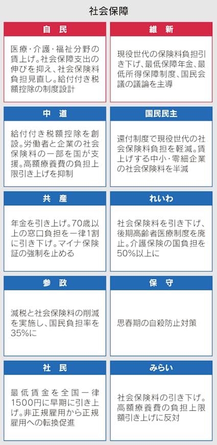 歴代の政権が消費税を社会保障の公費財源と位置づけ、政権の命運を賭けてでも税率を引き上げてきたのは、国債発行による将来へのツケ回しを回避するだけでなく、負担の構造改革に資するからだ。基礎年金の国庫負担割合を3分の1から2分の1に上げた2009年度の改革が好例だ。消費活動には保有資産も含めた家計の状況が反映される。消費税にも逆進性はあるが、社会保障の財源に組み込んでいけば、所得は少ないが資産がある高齢者に「能力に応じた負担」を求めることができる。消費税は社会保険の適用対象外で事業主負担がない中小・零細事業所も納める。すべての個人、法人が少子高齢化を乗り切るための痛みを分かち合う形になる。新政権が消費税率の引き下げに踏み切ればこうした構造改革の歩みは止まる。資産を厳密に勘案した負担の枠組みなど、余力のある高齢者に負担増を求める代替策が急務となる。所得税制に給付金の仕組みを組み込む給付付き税額控除は、中低所得層を救う有力案なのは確かだ。ただし年金受給者を給付対象に含めたり、所得税の増税など現役世代の負担増で財源を賄ったりすれば「再分配の欠陥」をかえって広げかねない。少子高齢化の構造を見据えた設計が要る。