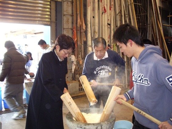 アトランタ五輪女子470級銀メダリスト重由美子選手、木下アリーシア選手が所属している事で有名な玄海セーリングクラブの餅つき大会に参加しました。 当日はかなりの冷え込みで手がかじかんで指が曲がらなくなるほどの寒さでしたが、参加した子ども達は少しも寒そうな様子が無く、元気いっぱいで、餅つきが始まると楽しそうに杵を振るっていました。
