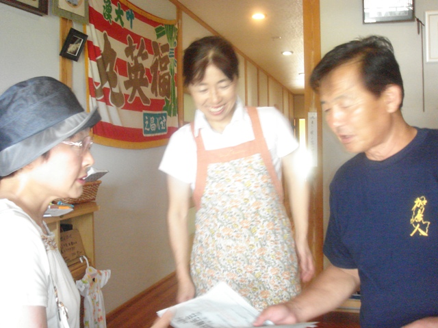 8月20日に、唐津市鎮西町加唐島で国政報告会を開催するため、 元鎮西町長で、現唐津市議会議員の酒井さんといっしょに、島に 渡り、戸別訪問して、お知らせを手渡してきました。 酒井さんは、さすがに島のすみずみのことまでわかっていらっし ゃり、また、島のお友達から軽トラックを借りて大泊まで案内して 下さいました。 加唐島は、百済の武寧王生誕の地であるとともに、現在、アワビ の養殖や海の水からの製塩などが行われています。漁業、観光、 農業などをうまく組み合わせると、島の発展は必ずできると思い ながら、帰ってきました。