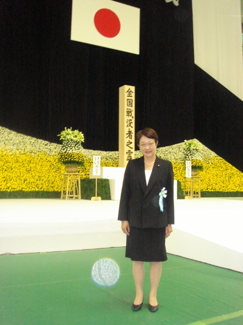 日本武道館で行われた全国戦没者追悼式に出席しました。 国会議員は、こういうところに行って、前の方の席に座れるので、 よく見えて勉強になります。 写真の霊の前で追悼の言葉を読んでいらっしゃるのは、参議院 議長の扇千影さんで、着物姿が、よくお似合いでした。 このほか、天皇陛下、小泉首相、衆議院議長、遺族代表などの 追悼の言葉がありました。