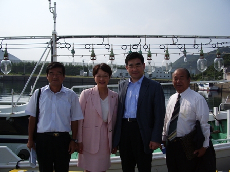 唐津市鎮西町の離島である加唐島で、国政報告会をしました。 国政報告会の資料は、離島用に水産業、離島振興、都市と農山漁村の 共生対流の項目を多くしました。21世紀、日本の食料自給率を高めるた めには、四方を海で囲まれている離島の水産業や水産資源は有望にな りますので、これを活かして、生産性、品質の優れた水産業を振興し、過 疎化を克服していく第一歩にしたいと思っています。 上の写真は、いか釣り漁船、港に生きたまま売っている魚、国政報告会 の風景です。