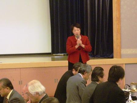 川内野集落 日本農林漁業振興会会長賞・農林水産大臣賞受賞祝賀会に、 来賓として出席しました。 <ご祝辞の内容> ・ただ今、ご紹介いただきました衆議院議員の広津もと子でございます。 この度は、伊万里市の川内野(かわちの)集落が、平成20年度 農林 水産祭むらづくり部門において、日本農林漁業振興会長賞並びに農林 水産大臣賞を受賞されましたこと、誠におめでとうございます。 ・そして、その授賞を祝うおめでたい祝賀会にお招きいただきまして、有 難うございました。 ・「農林水産祭」は、昭和37年から毎年11月23日の勤労感謝の日を中心 として、全国民の農林水産業に対する認識を深め、農林水産業者の技 術改善や経営発展意欲の高揚を図るために、国民的な祭典として行わ れているものです。 ・そして、「むらづくり部門」の賞は、「農林水産祭」の表彰行事7部門の一 つで、「地域ぐるみの連帯感の情勢」や「農山漁村の健全な発展」に資す ることを目的として、昭和54年度から実施されております。 ・川内野集落では、平成6年に、農協青年部が中心となって「コメCOME倶 楽部」がここにしかない作物をつくろうと、古代米である黒米の栽培をはじ めたのがきっかけで、集落全体にむらづくりの気運が高まり、女性グループ 等による黒米の創作料理や市内の農林高校との連携による黒米加工品の 開発や、黒米を活用した「夢の市」など、都市住民との交流に取り組んで おられ、黒米をキーワードとしたむらづくりが展開されています。 ・また、機械利用組合や圃場整備などによる合理的な経営による農業の振興 や、伝統芸能の伝承・史跡の保存活動にも、積極的に取り組んでおられ、 このたび、川内野集落が農林水産大臣賞を受賞されましたことは、当たり前 であるとともに、大変、意義あることだと思います。 ・最後に、あらためて川内野集落の日本農林漁業振興会長賞並びに農林水産 臣賞の受賞に心からの祝意を表しますとともに、皆さまのますますのご活躍・ ご多幸を祈念いたしまして、私のご祝辞を終わります。