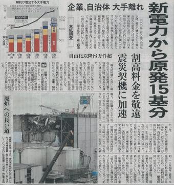 ![]() 2014.12.13東京新聞 2015.9.5東京新聞 ![]() 1号機と3号機の爆発比較 3号機の爆発 2015.9.11 2015.9.12東京新聞 時系列 佐賀新聞 (1)フクイチ事故について *1-1のように、今頃になって原子炉内部を画像で確認したというのは誠実さに欠けるが、東電が公表した宇宙線を利用してフクイチの原子炉内を透視した画像では、大きな燃料は確認されず、本来核燃料があった場所に、核燃料は殆ど残っていないことが確かめられた。 これについて、東電は「燃料の大部分が溶け落ちた」としているが、それはまだ甘い解釈であり、3号機は上の写真のように1号機とは全く別の爆発の仕方をしており、最初にオレンジ色の光が出ているため核爆発だと外国のメディアでは説明しており、このオレンジの光は日本のメディアでは公表されていない。このため、3号機は核爆発して内部の核燃料を外に吹き出し、本来燃料があった場所に核燃料は殆ど残っていないと考えるのが自然で、これは、上の段の左図のように、1、2号機と比べて3号機建屋内の線量が桁違いに低いことからも明らかだ。 そして、*1-2のように、この原発事故賠償のために、国は東電に税金から上限9兆円(一年間の消費税3.6%分)の支援を行い、その資金の回収を終えるまでに最長30年かかるとする試算を会計検査院がまとめた。私は、資金回収の原資は送電子会社の株式売却によっても得られると思うが、それにしても9兆円は膨大な金額であり、これで賠償が終わるという保証はない。 また、国際原子力機関(IAEA)は、*1-3のように、フクイチ原発事故を総括する最終報告書を公表し、事故の主な要因は「日本に原発が安全だという思い込みがあり、備えが不十分だった」と指摘した上で、安全基準を定期的に再検討する必要があると提言した。また、「いくつかの自然災害が同時に発生することなど、あらゆる可能性を考慮して安全基準を定期的に再検討する必要がある」とも提言している。 一方、市民の健康について、IAEAは、*1-3のように、「事故を原因とする影響は確認されていない」とし、原子力学会も、*2-5のように、「除染や帰還をめぐり1ミリシーベルトの壁(目標)ができているのはとてもおかしいことだ」という考えを示している。しかし、どちらも原発の機械の専門家であって病気や健康の専門家ではないため、謙虚になってお手盛りの発言は控えるべきだ。東電フクイチ事故調査委員長を務めた畑村氏は、*2-5のように、「年間追加被曝線量1ミリシーベルト以下を掲げる必要はない」とし、その根拠として、自然放射線による年間被曝線量が国内の平均値で年間1.5ミリシーベルトだとしているが、私が過酷事故の影響を受けていない佐賀県唐津市で測った線量は0.05~0.13マイクロシーベルト/時であり、これは0.438~1.14ミリシーベルト/年(0.05~0.13マイクロシーベルトX 24時間 X 365日/1000)にしかならず、国際基準も1ミリシーベルト以下なのである。 このような中、*1-5のように、小泉元首相が「原発は環境汚染産業」としているのは当然であり、もはや必要がないのに高リスク・高コストをかけて原発再稼働を行うのは、原子力発電が自己目的化しているからにすぎない。 なお、*1-4のように、「原発安全神話」の復活に危機感を持ち、原発の元技術者にも「原発を疑え」という人が出ている。川内原発の地元商店主は、原発の再稼働で全国から作業員が大挙して行う定期点検を待ちわびているそうだが、それで街の経済が本物に育っていくわけがなく、原発があることで「危険で不便な街」として住民がますます減り、街は衰退する方向に向かうだろう。そのため、「再稼働を認めない」という地元住民も多いことに注目すべきであり、今が原発から撤退する潮時なのである。 (2)年間20ミリシーベルト以下の地域の避難解除では国民の命を守れない *2-1のように、国は、「楢葉町の宅地における空間線量が1時間当たり平均0.3マイクロシーベルト/時(昨年7〜11月)に低下し、年間被曝線量が帰還の目安である年間20ミリシーベルトを下回ることが確実になった」として避難解除を決定した。 しかし、*2-4の日本弁護士連合会会長声明に書かれているとおり、チェルノブイリ法では、年間5ミリシーベルトを超える地域では避難が義務付けられ、1~5ミリシーベルトでは避難の選択権があり、我が国でもこれまで一般公衆の被曝限度は年間1ミリシーベルト以下とされ、労災認定基準や放射線管理区域の基準は年間5ミリシーベルトとされてきた。これらに比べて、年間20ミリシーベルトという基準はあまりにも高すぎるため、*2-2のように、「復興拠点に」と国が後押ししても、戻った住民は1割で、医者がいないのは当然なのだ。何故なら、住宅地の空間線量が0.3マイクロシーベルト/時(2.6ミリシーベルト/年)にまで下がったとしても、住宅地以外は除染されておらず、水がめの木戸ダムの湖底の土からも放射性物質が検出され、農作物の安全も危ぶまれるからである。 また、*2-6のように、9月11~12日の豪雨によ