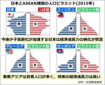 (1)人口減少が経済悪化の原因ではないこと ![]() 日本の経済成長率推移 “高齢者”割合の急速な増加 人口構造の変化 (図の説明:左図の「経済成長率(数学的には、GDPの変化率)」は、戦後から第一次オイルショックまでは9%前後であり、オイルショックからバブル崩壊時までは4%前後だった。そして、バブル崩壊後は、リーマンショック時にマイナスになったものの、だいたい1%前後で推移している。つまり、誰もが購入したいと思う新製品がある時にはGDPが急激に増え(=変化率が高くなり)、それがなければ安定した状態が続くということだ。また、日本の人口は、中央と右図のように、“高齢者”の割合が大きくなっていくが、これは購入したいと思う需要構造が変化することを示している。そのような中、介護は需要が増えるサービスの代表で、雇用吸収力も大きいため、必要な介護サービスを削減するのは経済にマイナスだ。また、生産年齢人口に入れられない“高齢者”の定義は、寿命が延びれば高くなるのが当然で、女性の労働参加や外国人労働者の受け入れも増えるため、働く人や支える人が足りなくなるという主張は正しくないと考える) 1)世界と日本の人口推移 2100年には、*1-1のように、世界の人口は112億人、日本の人口は8,500万人になり、平均寿命は世界82.6歳、日本93.9歳になるそうだ。しかし、これについては、日本では、機械化・高齢者の雇用・女性の雇用・外国人労働者の受入拡大などのように、既に対応を始めているので問題ないと考える。 また、世界の人口は増え、日本の人口は減るため、2100年の平均出産数は、世界では1.97人まで減り、日本では1.79人に増えるそうで、これは数世代かけて生物的調整が働くからだ。 さらに、60歳以上の人口は、2100年には世界全体で現在の3倍以上になるとのことだが、世界でも平均寿命が82.6歳まで延びるのに、高齢者の定義を「60歳(又は65歳)以上」のまま変えないのが、実態に合わないわけである。 2)人口構造の変化と労働力・需要の変化 政府は、*1-2のように、「国内景気は、緩やかに回復している」としているが、私は金融緩和しなくても景気は回復したと思う。何故なら、東日本大震災等の大災害で多くの都市が壊滅的打撃を受け、リスクの小さい環境のよい街に再生するためには、莫大な公共投資が必要だからだ。そのため、このようにどうせ多額の国費を使わなければならない機会をとらえて、リスクや環境を考慮した進歩した街づくりを行い、無駄遣いの方は徹底してなくして欲しかった。 なお、大災害からの復興で建設に従事する労働力が不足している時に、同時に東京オリンピックや万博の誘致をしたのには疑問を感じるが、外国人労働者の受入拡大が実現したため、労働力のネックは次第になくなると思われる。 私は、個人消費が勢いに欠ける理由は、金融緩和と公共投資で景気を持たせているものの、①年金が主な収入源である65歳以上人口が29%を占めるのに、物価上昇やマクロ経済スライドなどで実質年金を減らしこと ②人口の29%を占める高齢者の社会保障も負担増・給付減にしたこと ③賃金上昇が物価上昇に追いつかず、現役世代の実質賃金も増えなかったこと ④消費税上昇分が物価に上乗せされ、明確に国民負担増となったこと などだと考える。 つまり、可処分所得が減れば、家計が破綻しないためには支出を減らすしかないため、現在は節約することが国民の唯一の選択肢になっており、これが消費者の財布のひもが固い本当の理由なのだ。しかし、景気拡大で、若い男性だけでなく高齢者や女性の雇用も増え、労働参加率が上がったことは重要だった。 3)実質賃金の上昇には、迅速なイノベーションが必要であること ![]() 日米の実質賃金推移 膝軟骨の再生医療 介護の市場規模 燃料電池バス (図の説明:米国は実質賃金が順調に伸びているのに対し、日本は低迷したままである。これは、金融緩和で金をじゃぶじゃぶにして物価を上げはしたものの、「本物の革新」が速やかにできないからだ。「本物の革新」とは、求められる新技術を積極的に作って実用化し、国民生活を豊かにしていくことだが、新しい技術ができると否定やバックラッシュが多く、日本で最初に実用化するのが難しいという状況がある。また、技術や生産の元になる特許権も粗末にされており、この点で、我が国の意識は開発途上国のままなのである) i)日本のイノベーションは、バックラッシュが多くて速度が遅い 日経新聞と一橋大学イノベーション研究センターが、*1-3-1のように、共同で世界の主要企業の「イノベーション力」ランキングをまとめたところ、米国のIT企業が上位を独占し、日本はトヨタ自動車の11位が最高で、楽天とソニーが30位台だったそうだ。 日本のメディアは、イノベーションの例として、既に常識となっているITやAIのクローズアップをすることが多いが、EV・自然エネルギー・自動運転・再生医療・癌の免疫療法・介護制度なども立派なイノベーシ